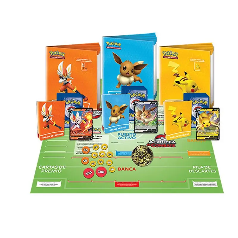 La Academia de Combate contiene todo lo que dos Entrenadores necesitan para empezar a jugar de inmediato , con manuales para ayudarte con las carajas y que te resulte sencillísimo lanzarte a tu primera partida.