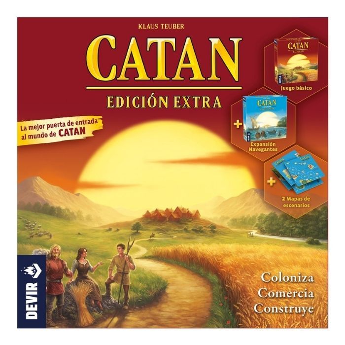 ¡Explora y coloniza la isla de Catan a lo grande! Esta edición del clásico de Klaus Teuber incluye el juego base más la primera expansión en caja grande, Catan Navegantes. Las posibilidades estratégicas que ofrece el juego original se multiplican con todos los elementos que aporta la expansión: piratas, minas de oro, barcos y nuevas islas. Además, esta caja incluye los mapas de Hawái y la Península Ibérica, que os permitirán jugar partidas temáticas. ¡Levad anclas! ¿Preparados para zarpar hacia el archipiélago de Catan?