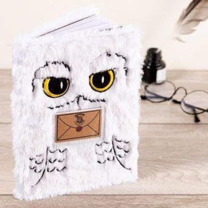 Impresionante cuaderno peluchón inspirado en Hedwig.
