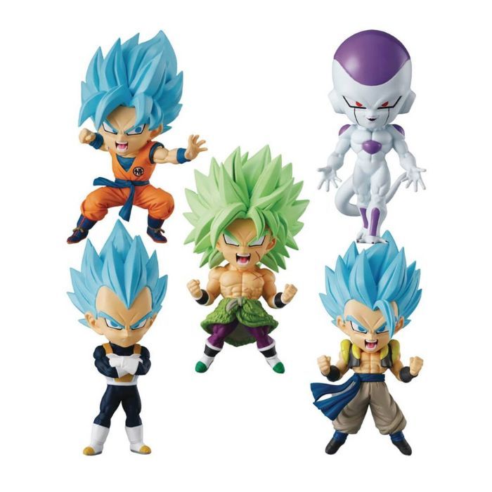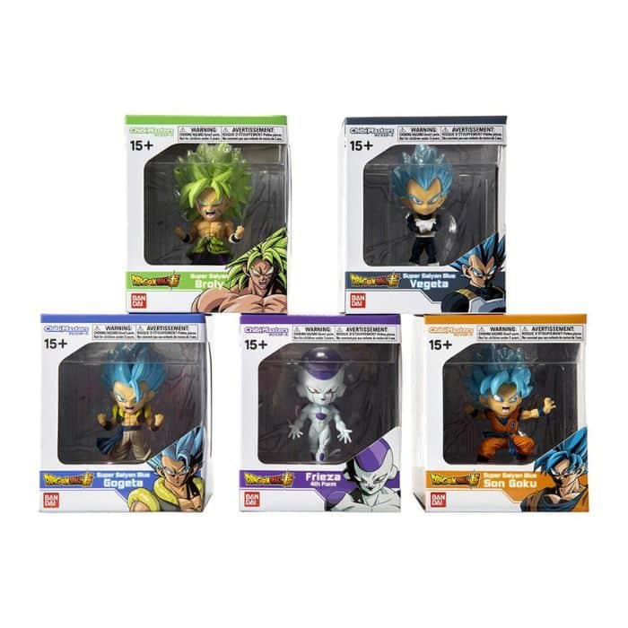 - 5 modelos diferentes para coleccionar: Goku Super Saiyan Blue | Frieza | Vegeta Super Saiyan Blue | Broly Super Saiyan | Gogeta Super Saiyan Blue