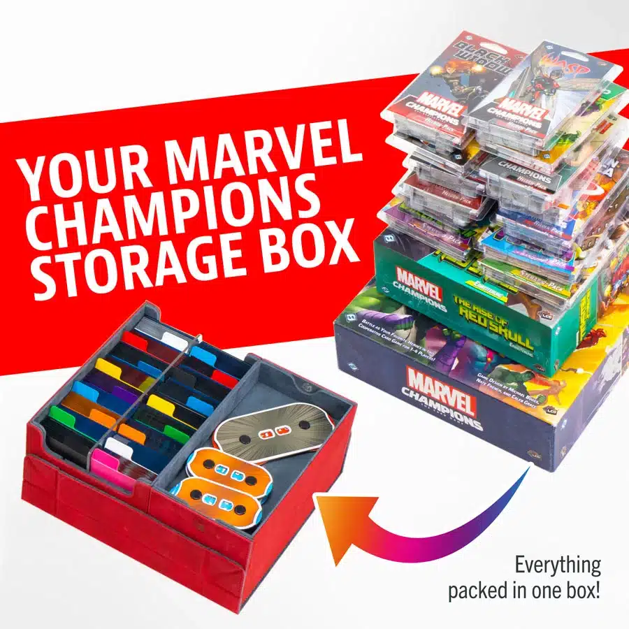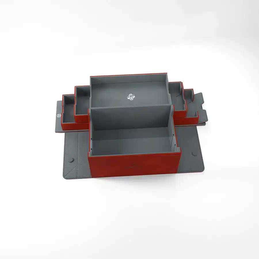 Este producto innovador cumple con las expectativas de juego más específicas. Esta caja compacta es perfecta para colecciones grandes de cartas y es la acompañante ideal para todos tus componentes de juego, para tus cajas para mazos, tus fichas, tus bolígrafos y papeles, tus dados y todo tipo de accesorios. Además, incluye una bandeja para dados convertible. La flexibilidad absoluta en una caja, tan compacta que cabe en la mayoría de las mochilas.