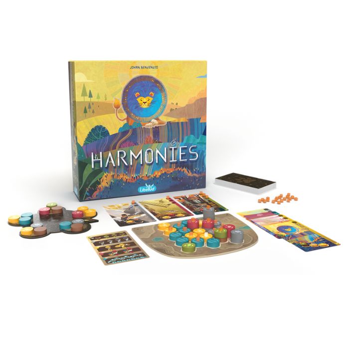 En Harmonies, tenéis que crear vuestros paisajes colocando fichas de colores y así construir hábitats para vuestros animales. Si queréis obtener el mayor número de puntos y ganar la partida, tendréis que incluir los hábitats en vuestros paisajes de manera estratégica y acoger tantos animales como podáis.