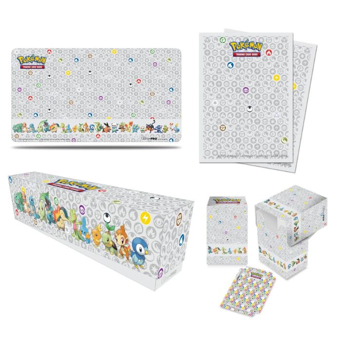 Todos los accesorios vienen presentados dentro de una caja de almacenamiento de cartas temática que tiene capacidad para hasta 700 cartas en fundas Ultra PRO. Los accesorios presentan símbolos de energía icónicos de Pokémon y Pokémon iniciales populares de las regiones de Kanto, Johto, Hoenn, Sinnoh, Teselia, Kalos, Alola y Galar.